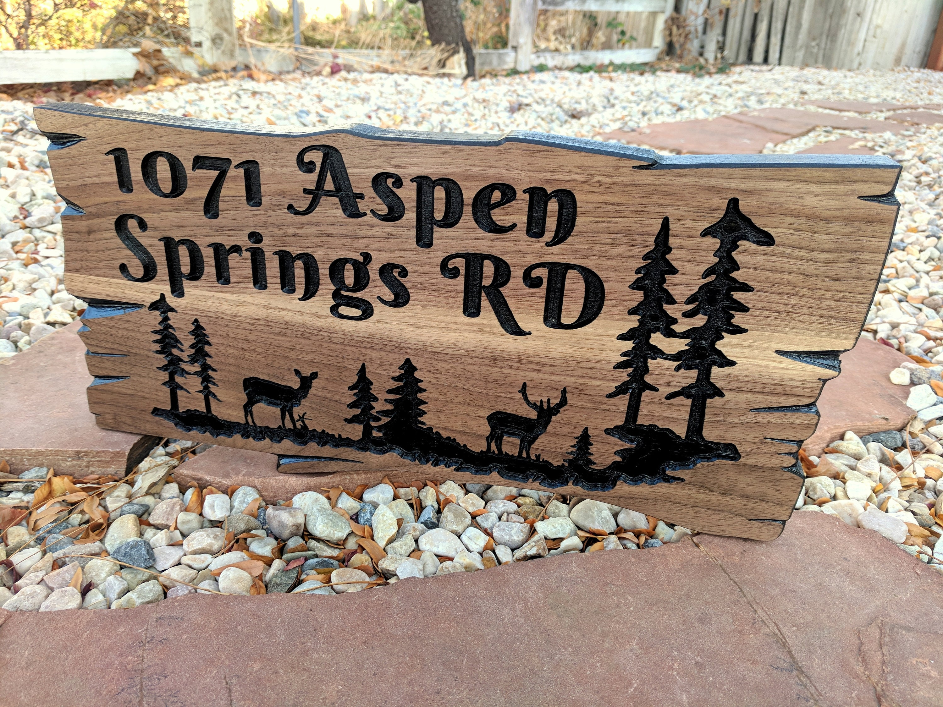 All of our custom wood signs are carved from solid hardwoods, mostly hardwoods that are knows to hold up well outdoors.