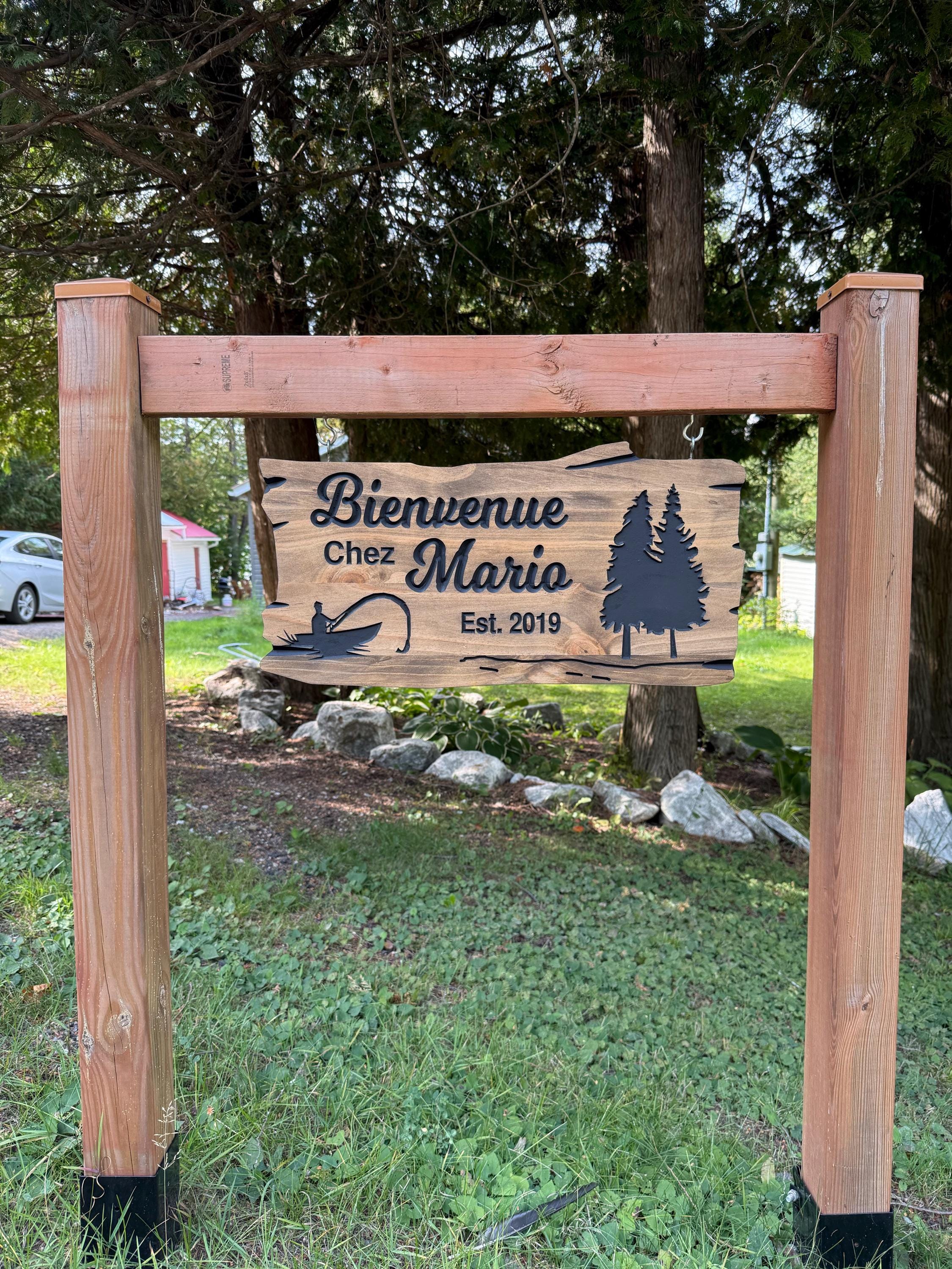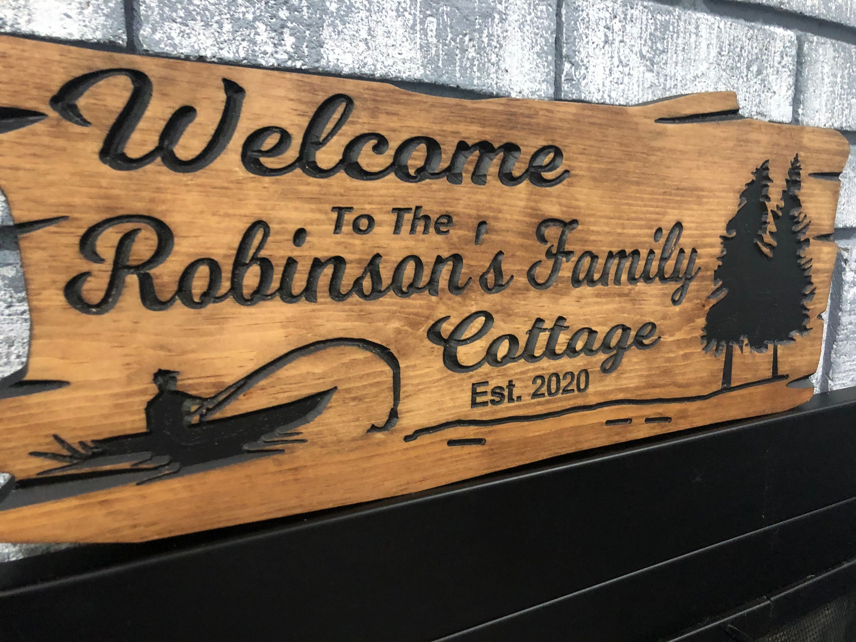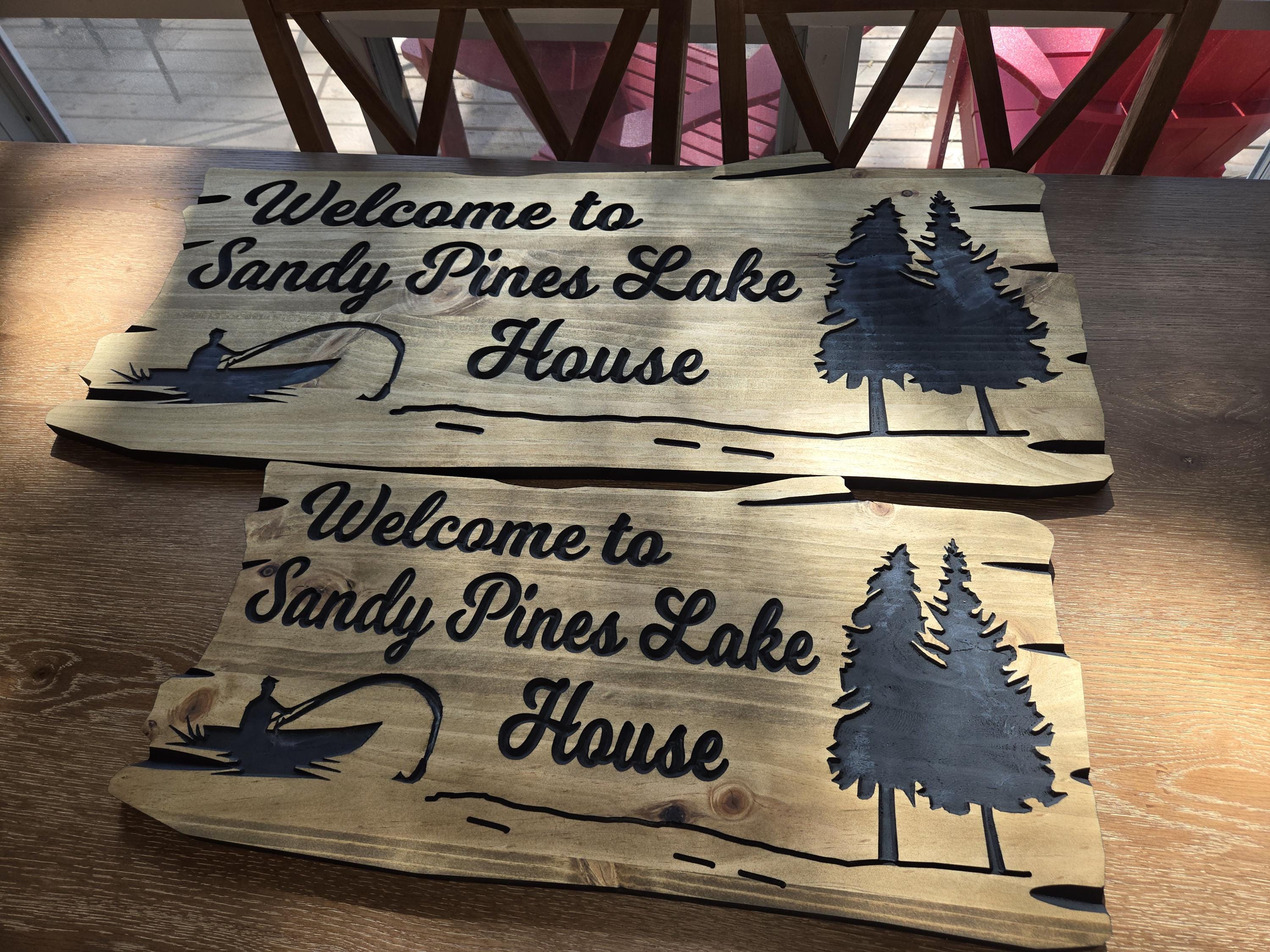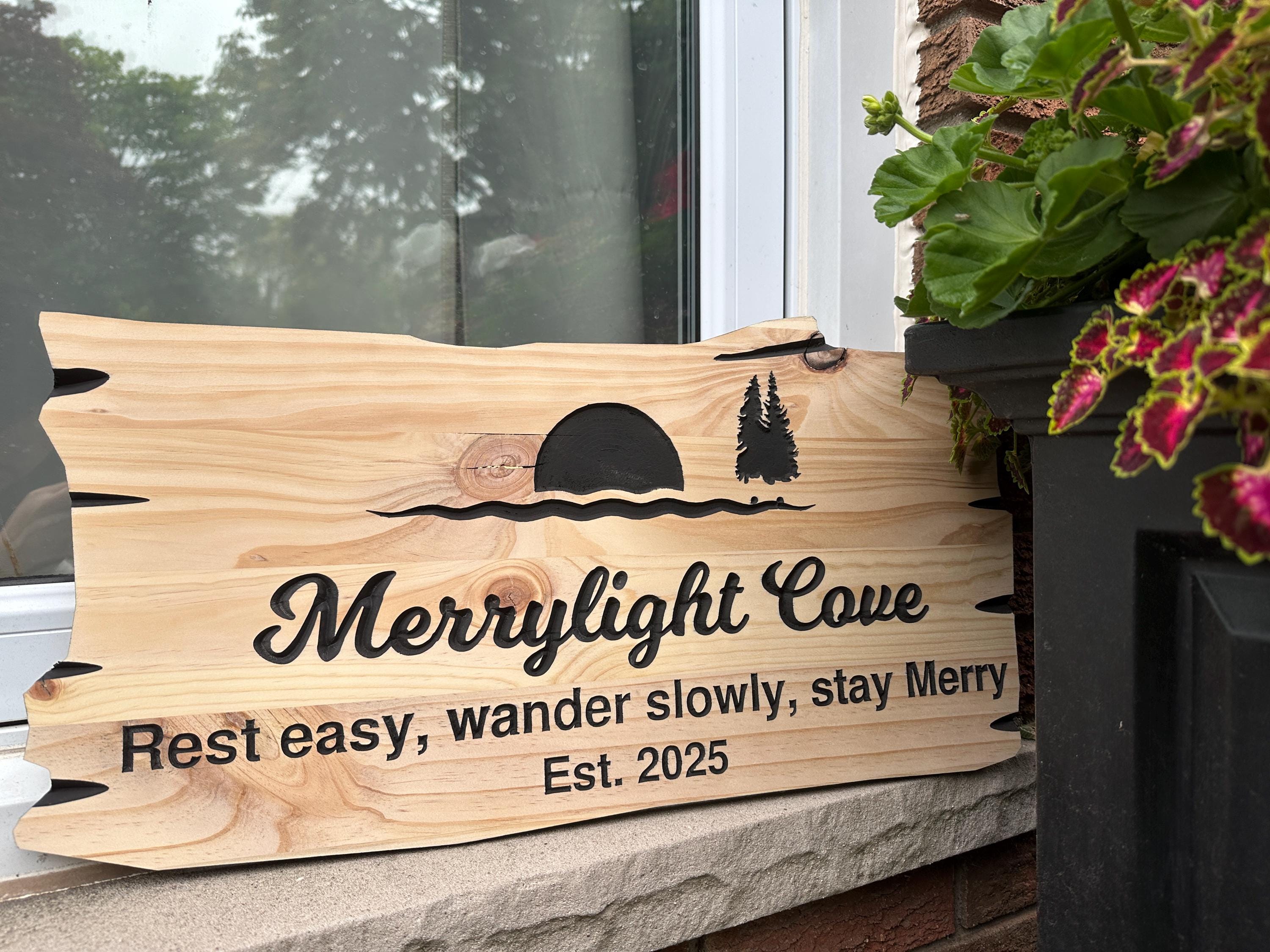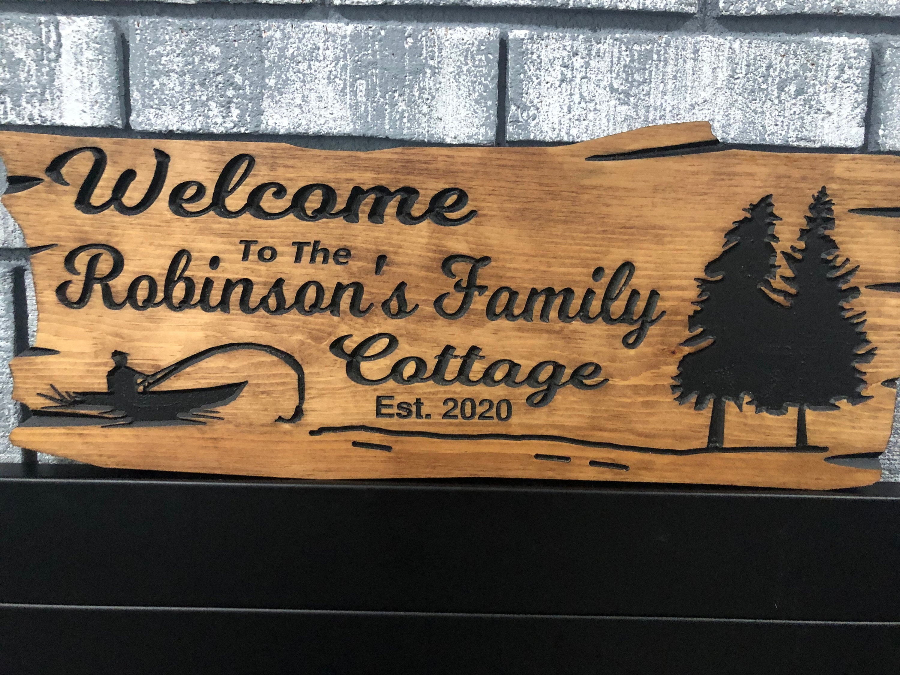 Our engraved wood signs are carefully made to showcase personalized carved details on a beautiful wooden wood sign, perfect for any outdoor cottage sign display.