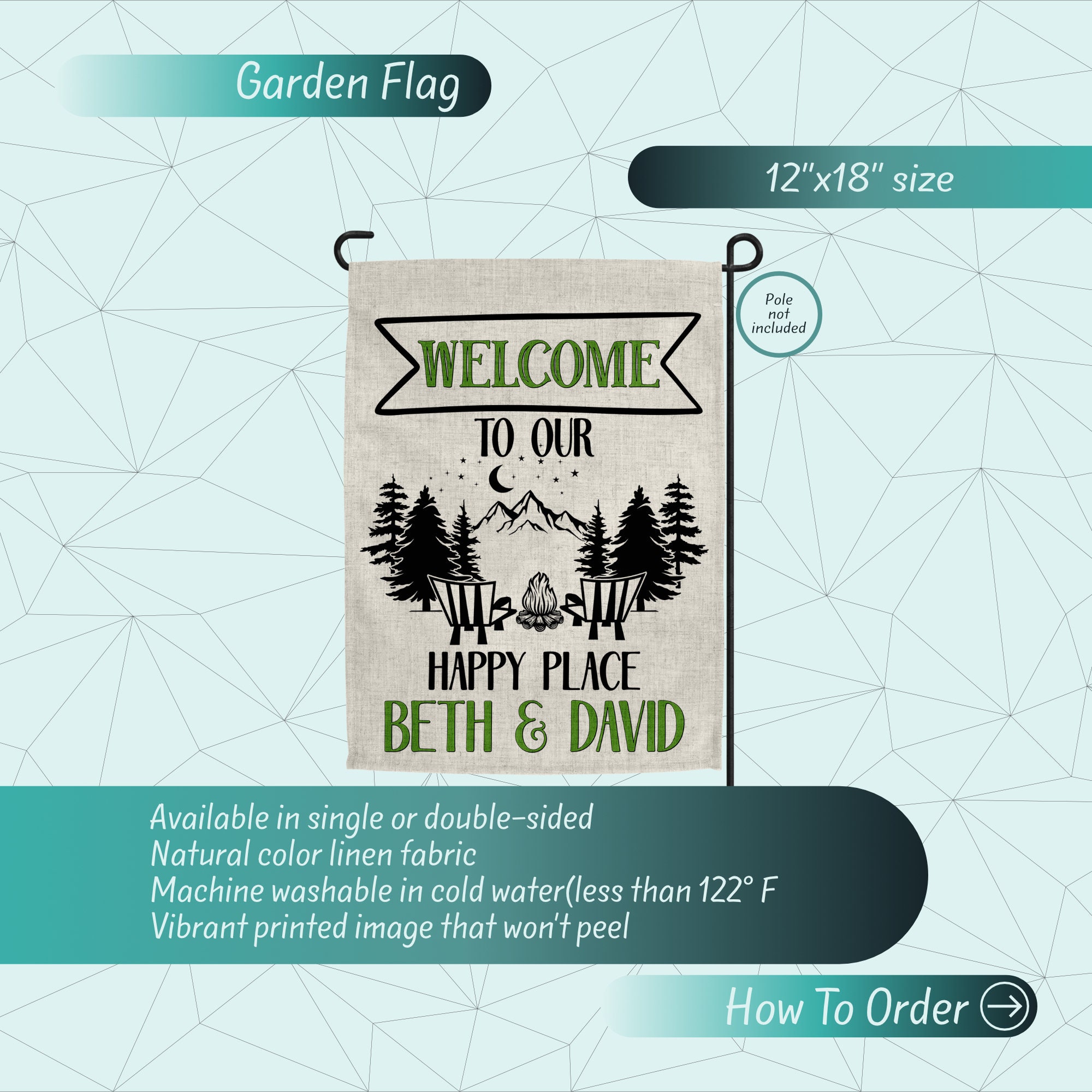 Enhance your backyard, RV setup, or campsite with this charming and personalized camping flag that adds a fun and unique touch to your outdoor space.