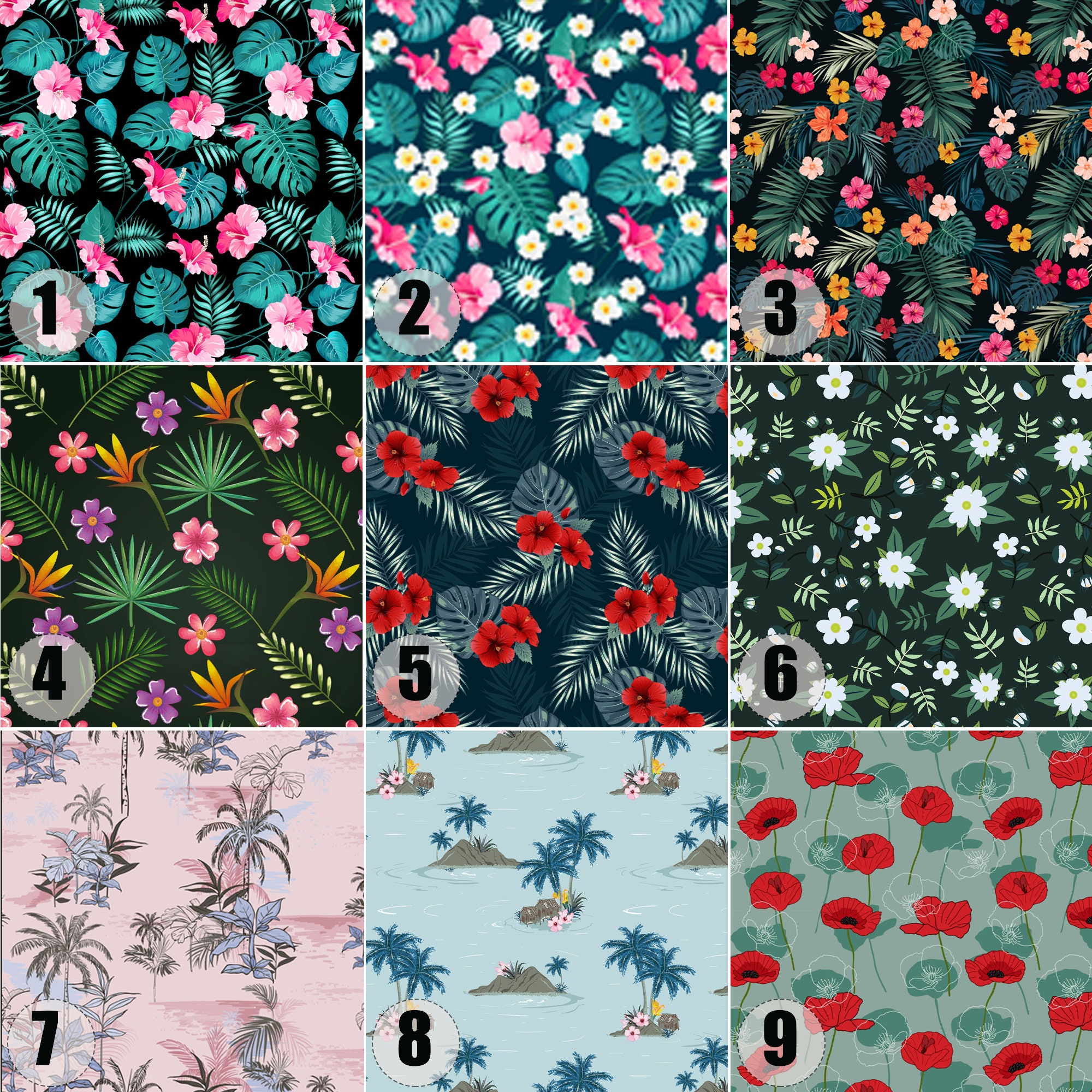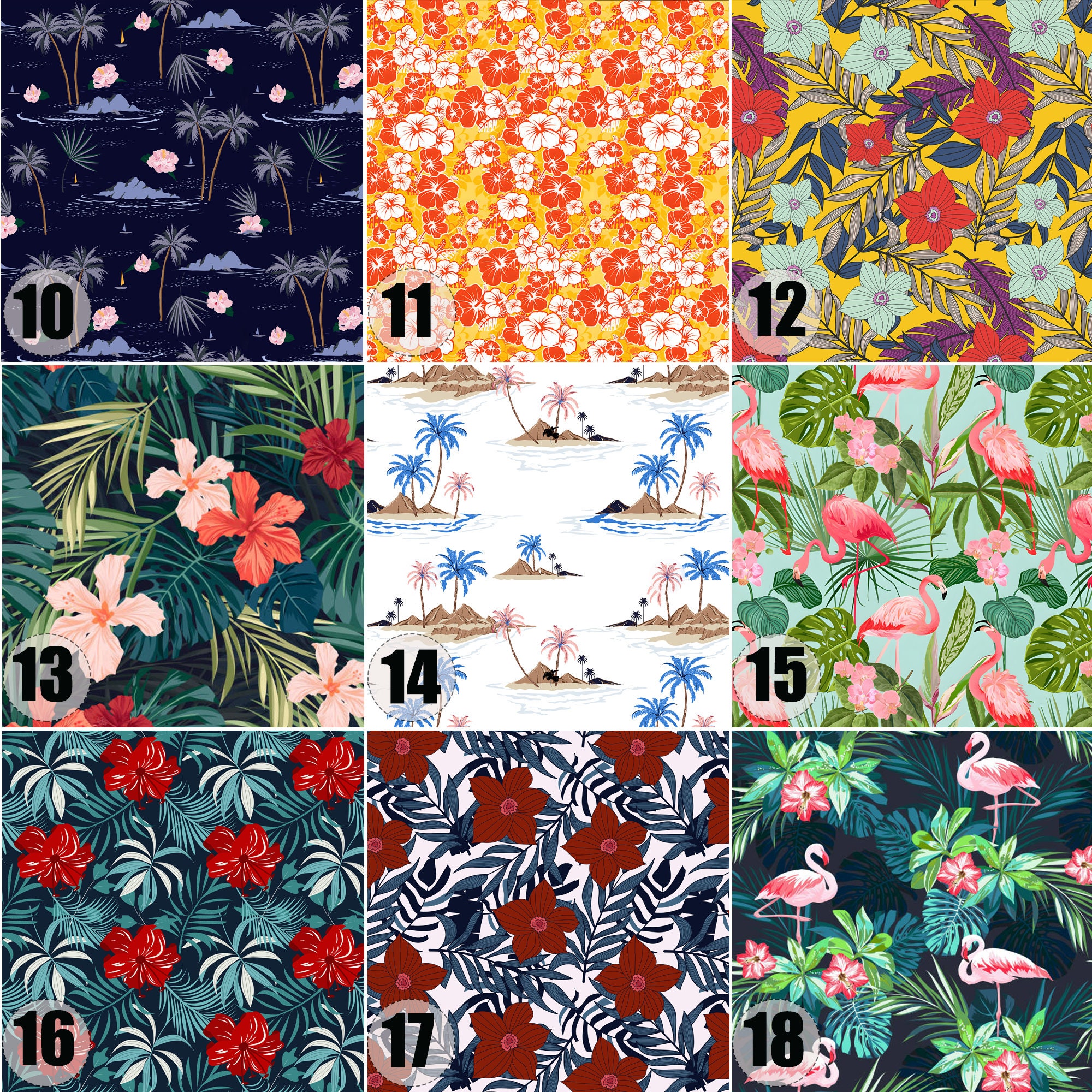 - Vibrant Hawaiian patterns that can be customized with faces or photos.