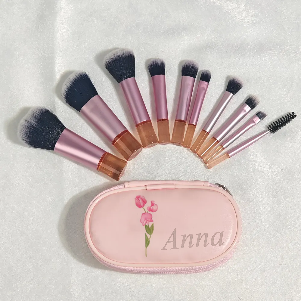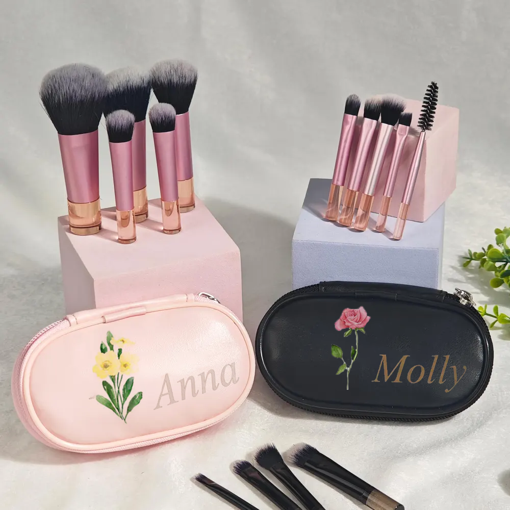 🎁 Personalized Makeup Brush Set with Birth Flower & Bag – Essential for Everyday Beauty 💄