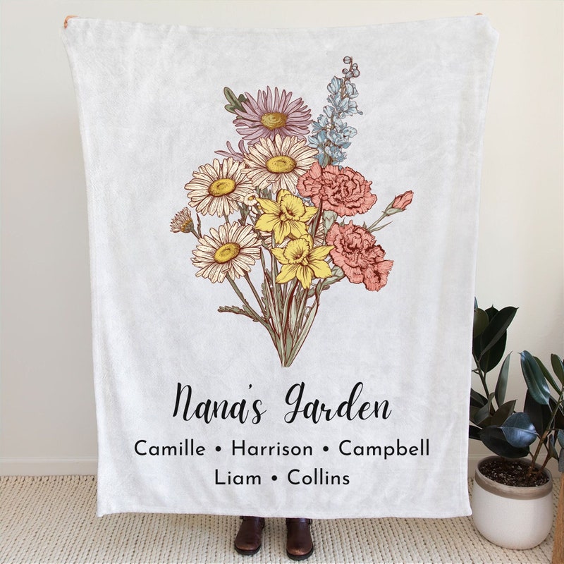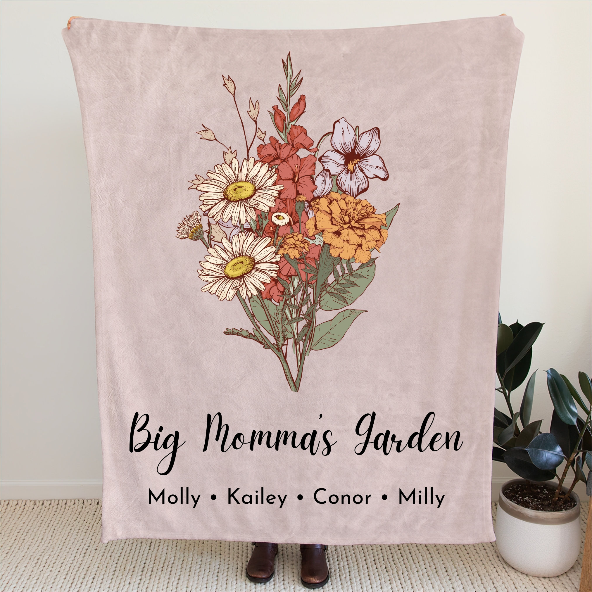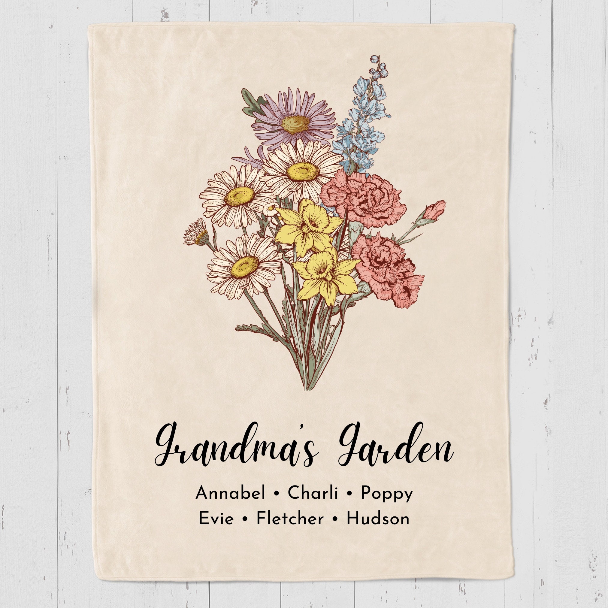 Grandma's Garden Blanket | Personalized Birth Month Flower Bouquet Throw