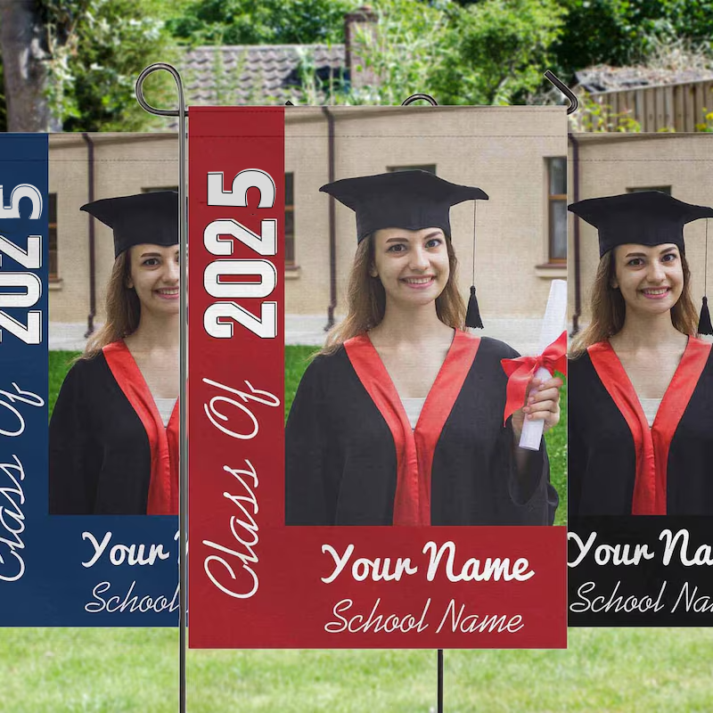 2️⃣ Upload Your Photo: Personalize the flag with the graduate’s photo, name, or message for a truly unique design.