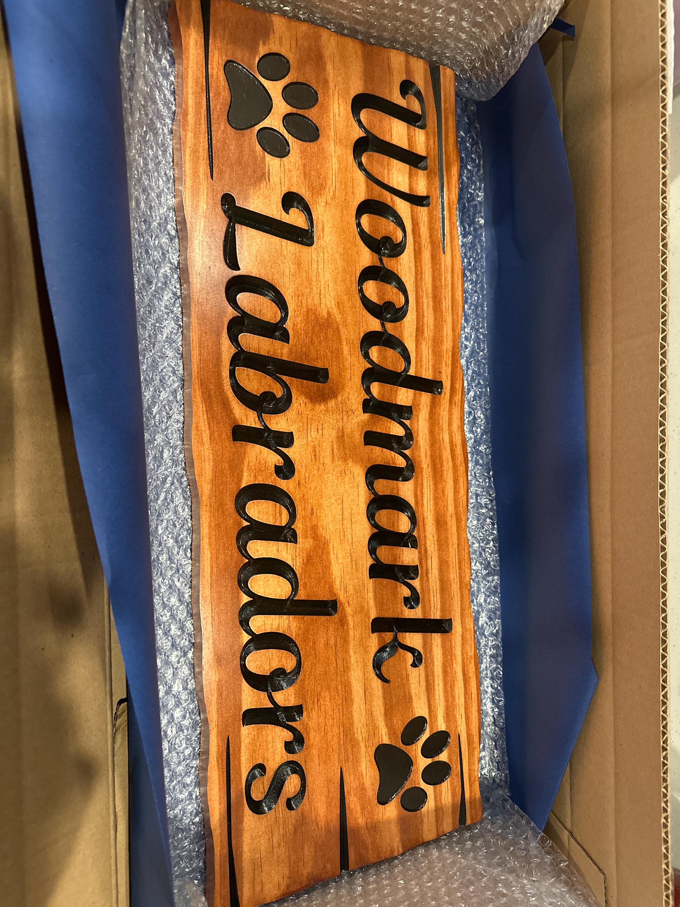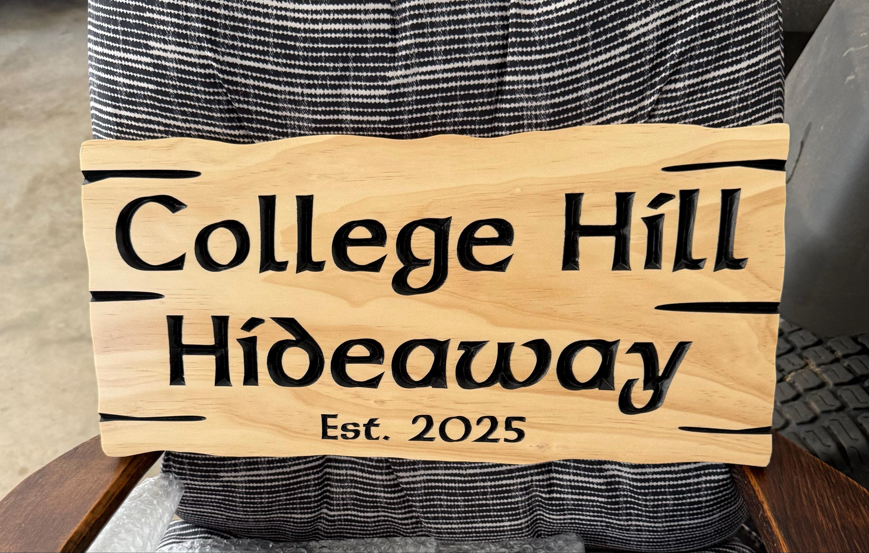 All my signs are V-carved deeply into the wood— a technique that gives a 3D look that painted, vinyl decal, and laser-engraved signs can’t match.