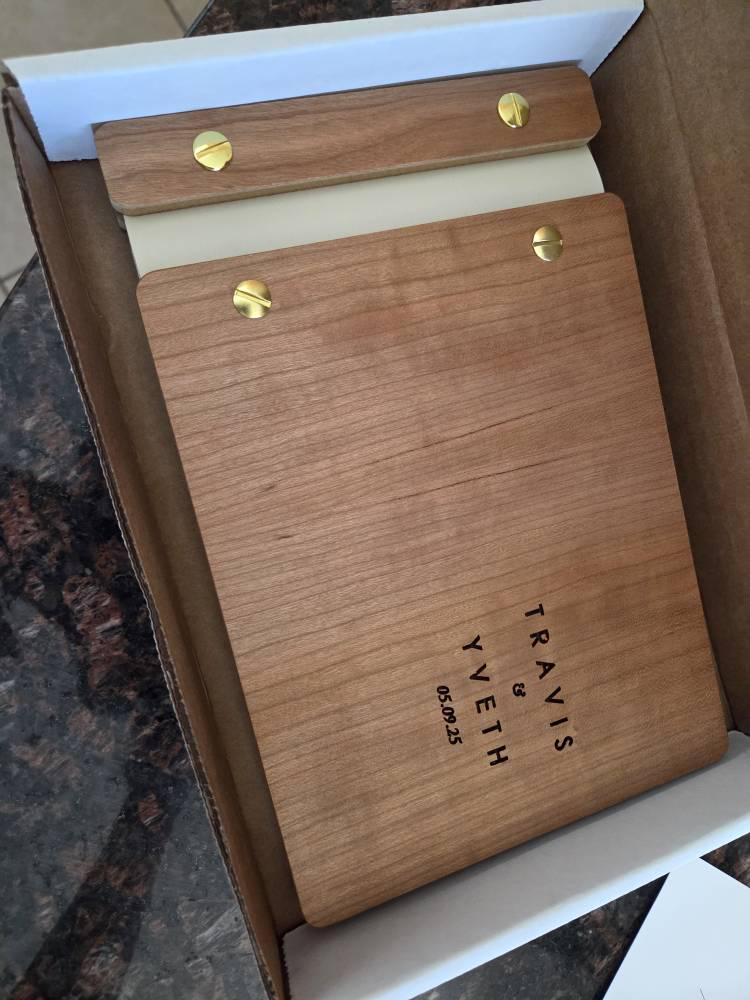 The Wedding Guest Book made from wood is a stunning and personalized way to capture the heartfelt messages and memories from your special day. This beautifully crafted wooden guest book can be customized with the couple's names, wedding date, creating a unique keepsake for years to come.